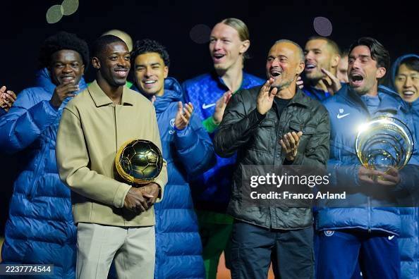 Ousmane Dembele celebrating the Balon d’or with his team and fans